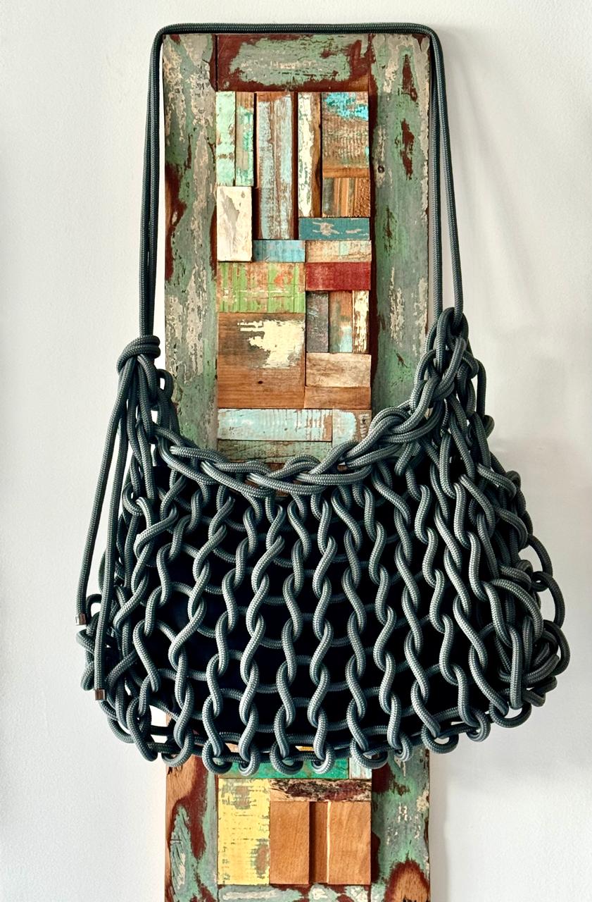 Corda prata com forro cinza.