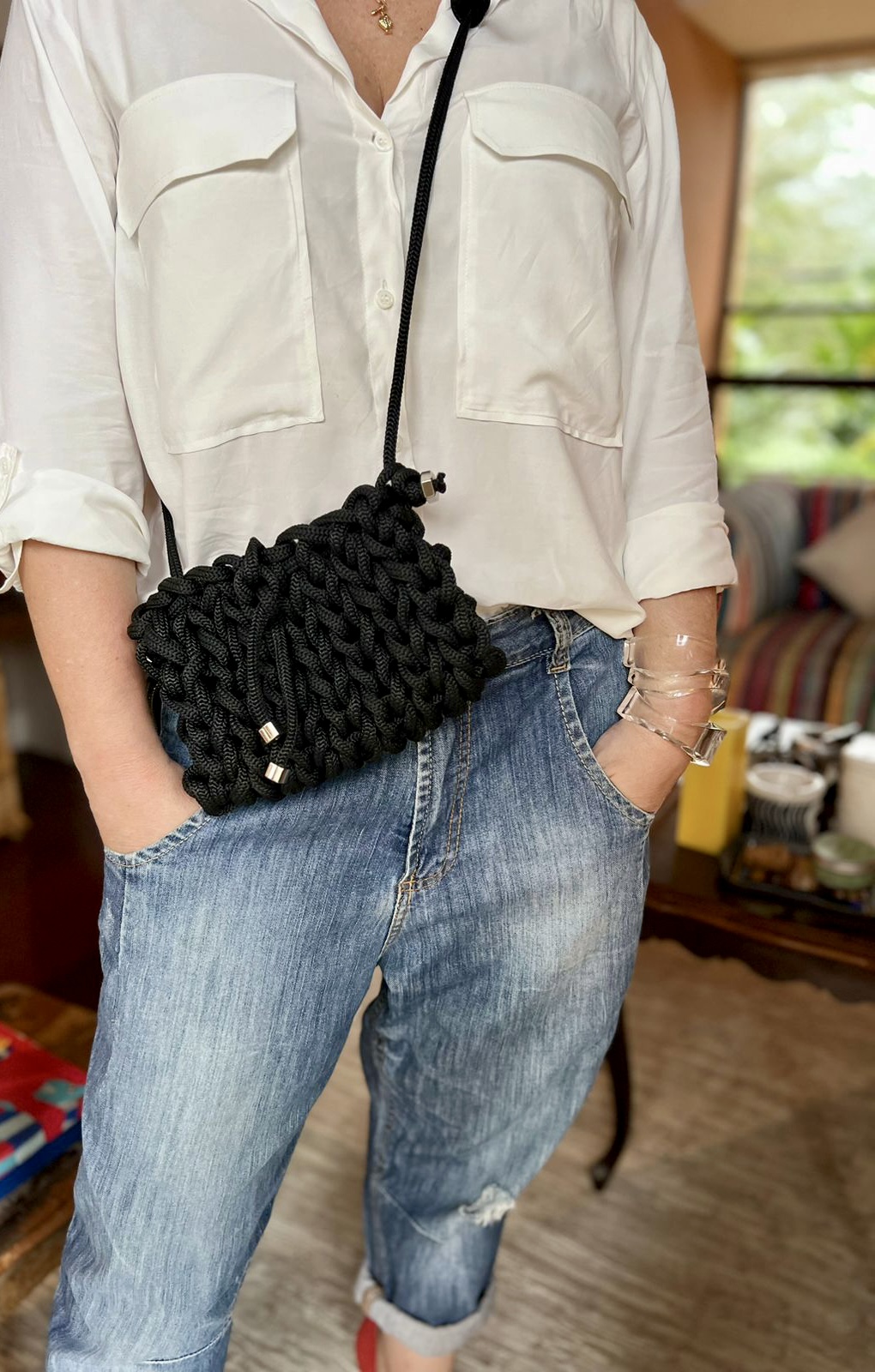 Bolsa Ganita preta, é aquela pequenininha que vai com tudo! É prática pra carregar um celular, um baton, uma chave. Para o dia ou para a noite, dando um toque moderno em qualquer look.